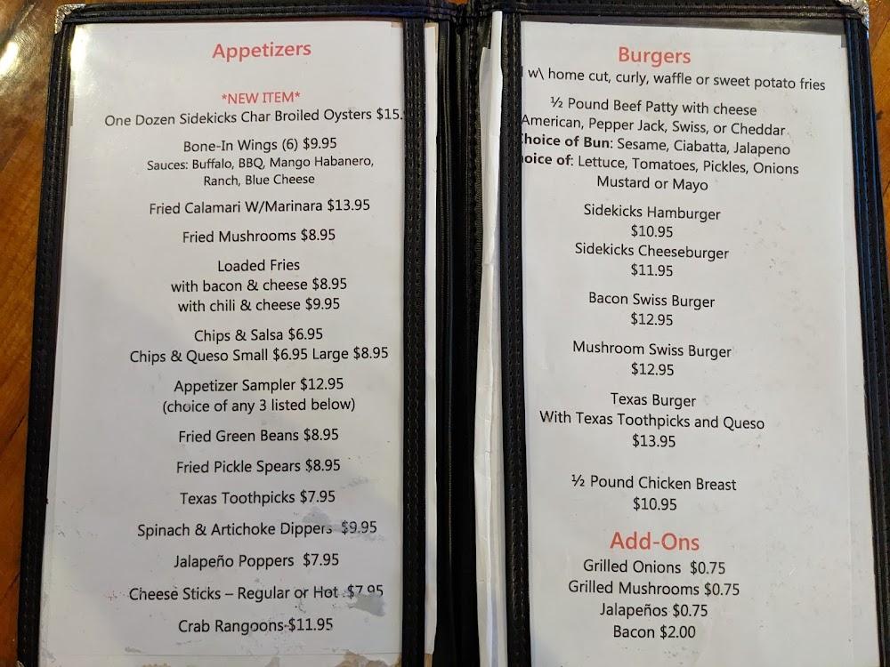 The menu at Sidekick's Bar & Grill is diverse, featuring over 100 mouthwatering options. From juicy burgers to fresh salads, there's something for everyone. The shrimp dishes are a fan favorite. Desserts like the caramel apple cobbler provide a sweet ending. Kids can enjoy their own menu with fun choices, too. Plus, the ambiance complements the food perfectly, enhancing the overall experience. Stop by for an unforgettable meal you won't regret.